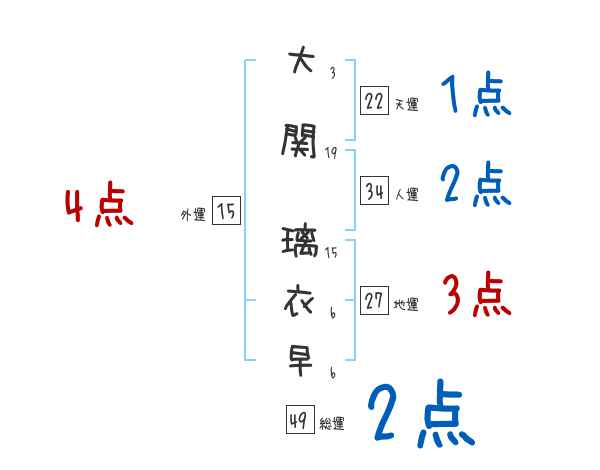 大関璃衣早さんの画数の鑑定結果