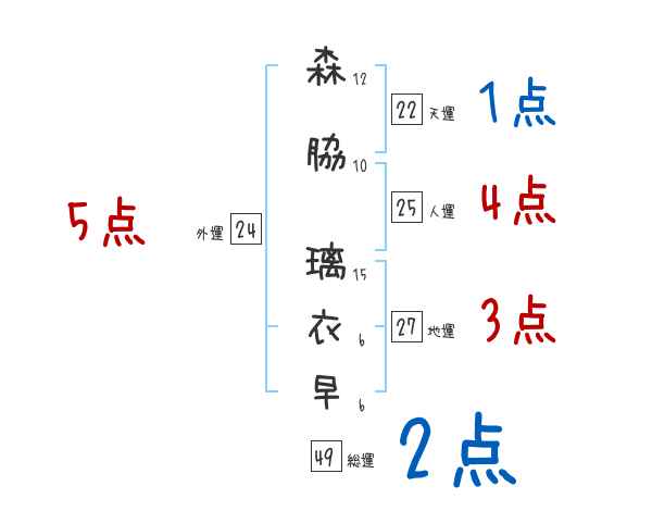 森脇璃衣早さんの画数の鑑定結果