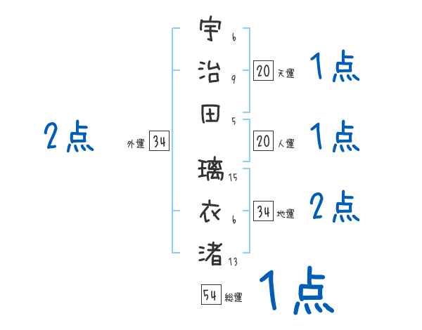宇治田璃衣渚さんの画数の鑑定結果