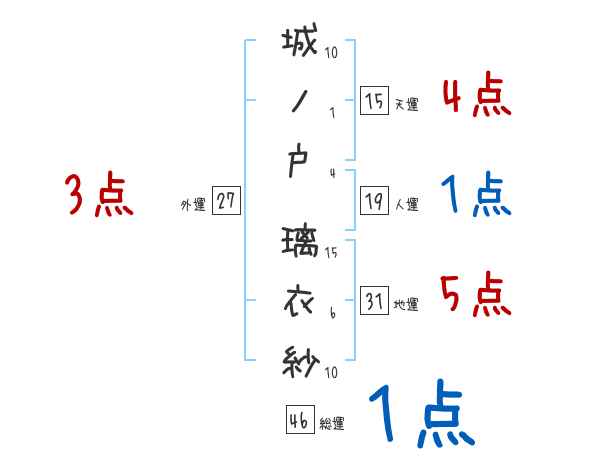 城ノ戸璃衣紗さんの画数の鑑定結果