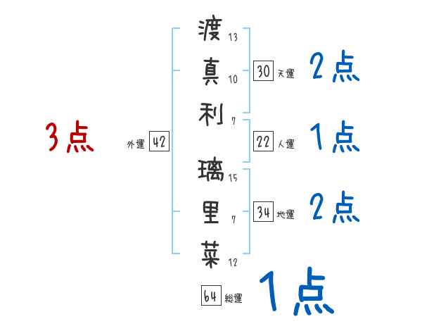 外運![]() | 渡真利璃里菜さんの外運は42画の3つ星!病気に注意。多芸であるが消極的でおとなしい。 生活面を象徴する運勢です。外部から受ける影響力を表し、結婚運、家庭運や職場、環境への順応性を表します。 |