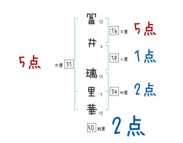 冨井璃里華さんの画数の鑑定結果
