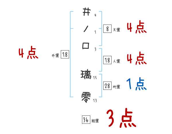 井ノ口璃零さんの外運は18画の4つ星