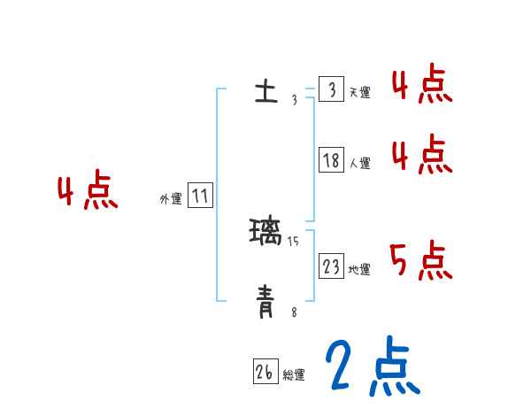 土璃青さんの画数の鑑定結果