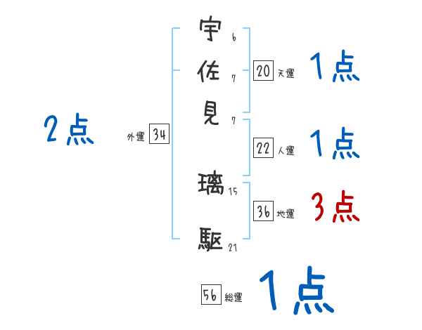 人運![]() | 宇佐見璃駆さんの人運は22画の1つ星!努力することが苦手ないっぽう手先が器用。芸術性にも優れる。 性格や才能などを表す2番目に重要な運勢です。人間関係や協調性、社会的な成功に影響します。主に20歳から50歳ぐらいまでの中年期の運勢を表します。 |
