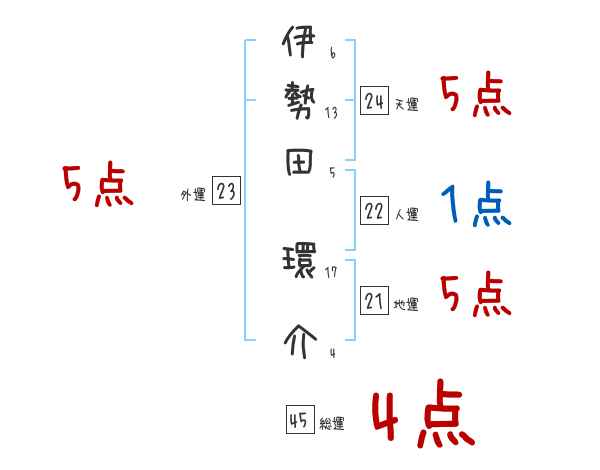 外運![]() | 伊勢田環介さんの外運は23画の5つ星!想像力に優れ活力がある。一代で成功し名誉を手に入れる。 生活面を象徴する運勢です。外部から受ける影響力を表し、結婚運、家庭運や職場、環境への順応性を表します。 |