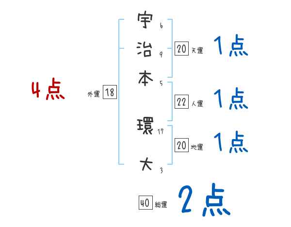 宇治本環大さんの画数の鑑定結果