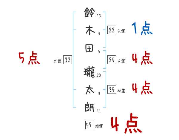 鈴木田瓏太朗さんの外運は32画の5つ星