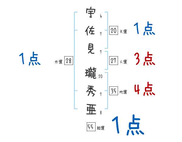 宇佐見瓏秀亜さんの画数の鑑定結果