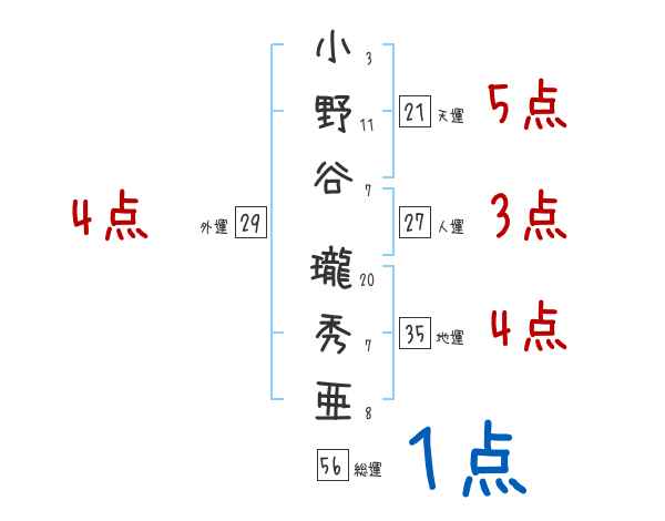 小野谷瓏秀亜さんの外運は29画の4つ星