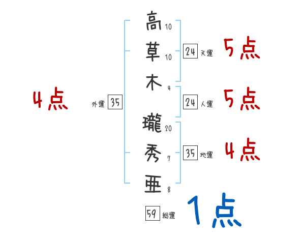 高草木瓏秀亜さんの外運は35画の4つ星