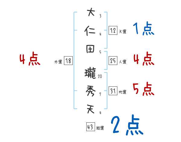 大仁田瓏秀天さんの画数の鑑定結果