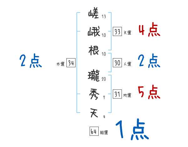 嵯峨根瓏秀天さんの画数の鑑定結果