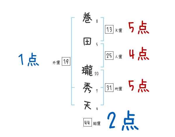 巻田瓏秀天さんの画数の鑑定結果