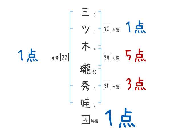 三ツ木瓏秀娃さんの画数の鑑定結果