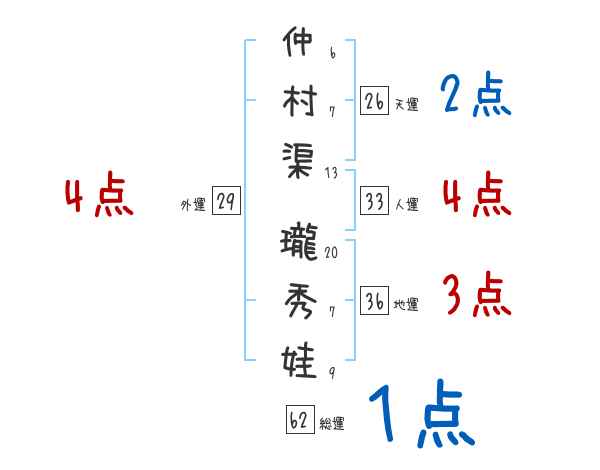 仲村渠瓏秀娃さんの画数の鑑定結果