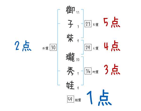 御子柴瓏秀娃さんの画数の鑑定結果