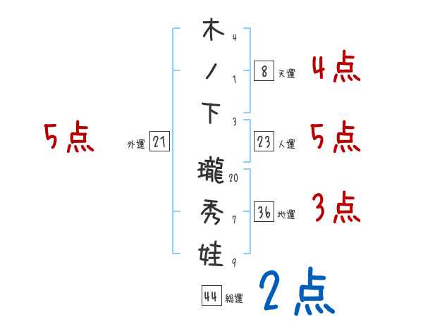 木ノ下瓏秀娃さんの画数の鑑定結果