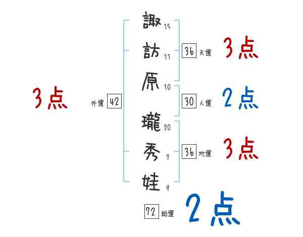 諏訪原瓏秀娃さんの画数の鑑定結果