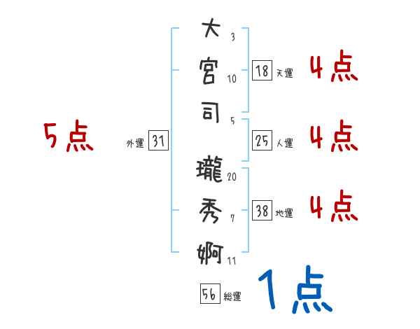 大宮司瓏秀婀さんの外運は31画の5つ星