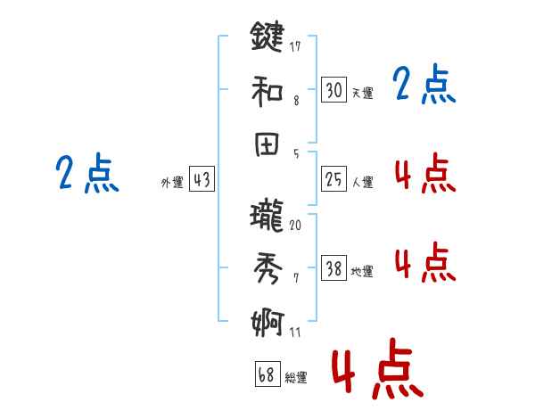 鍵和田瓏秀婀さんの画数の鑑定結果