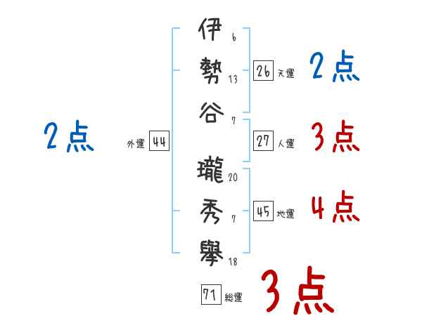 伊勢谷瓏秀擧さんの総運は71画の3つ星