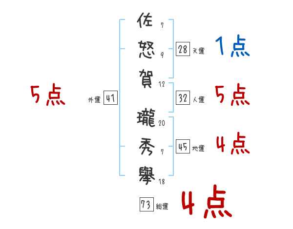 佐怒賀瓏秀擧さんの画数の鑑定結果