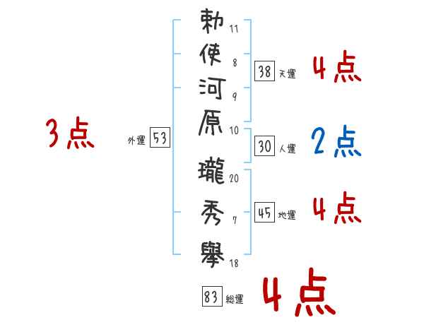 勅使河原瓏秀擧さんの総運は83画の4つ星