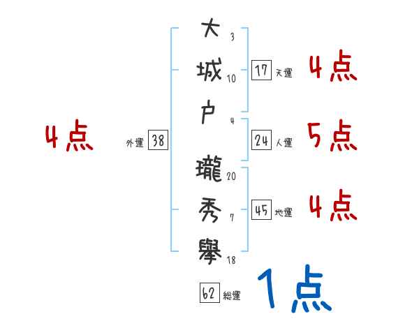 大城戸瓏秀擧さんの外運は38画の4つ星