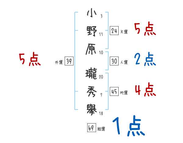 小野原瓏秀擧さんの画数の鑑定結果