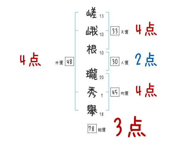 嵯峨根瓏秀擧さんの画数の鑑定結果