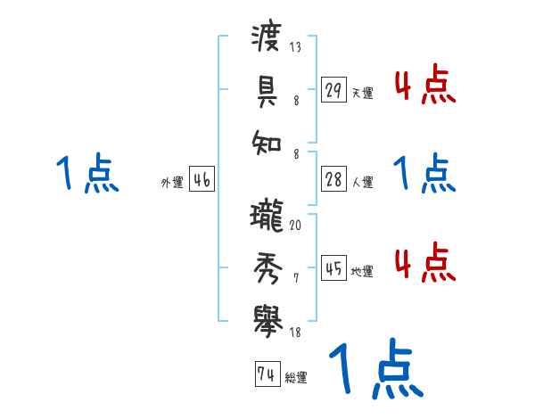 渡具知瓏秀擧さんの画数の鑑定結果