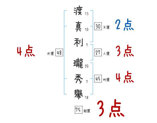 渡真利瓏秀擧さんの外運は48画の4つ星