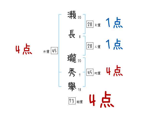 瀬長瓏秀擧さんの画数の鑑定結果