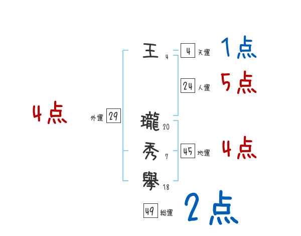 王瓏秀擧さんの画数の鑑定結果