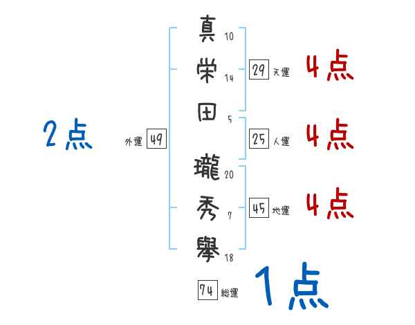 真栄田瓏秀擧さんの総運は74画の1つ星