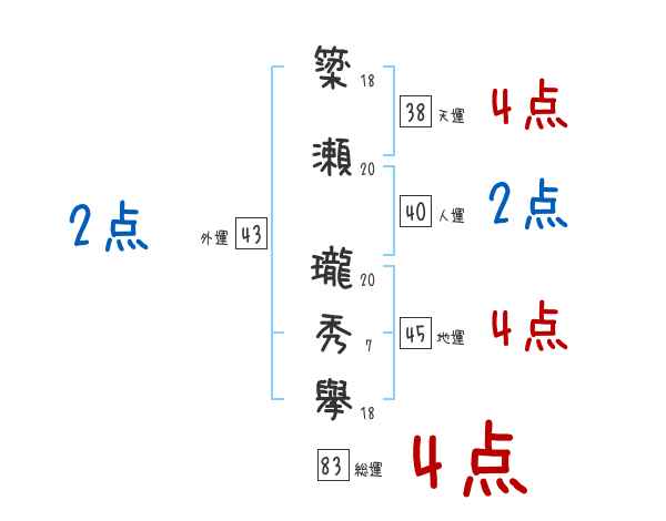 簗瀬瓏秀擧さんの画数の鑑定結果