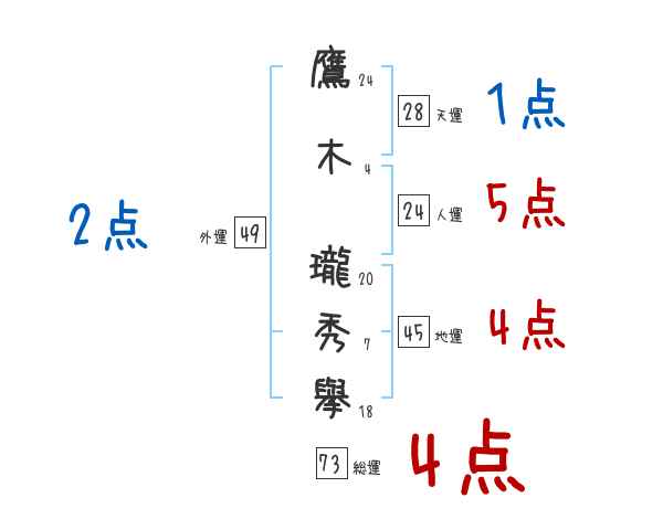 鷹木瓏秀擧さんの外運は49画の2つ星