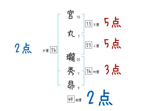 宮丸瓏秀昴さんの総運は49画の2つ星