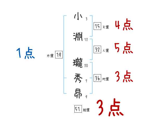 小淵瓏秀昴さんの画数の鑑定結果
