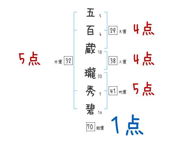 五百蔵瓏秀碧さんの画数の鑑定結果