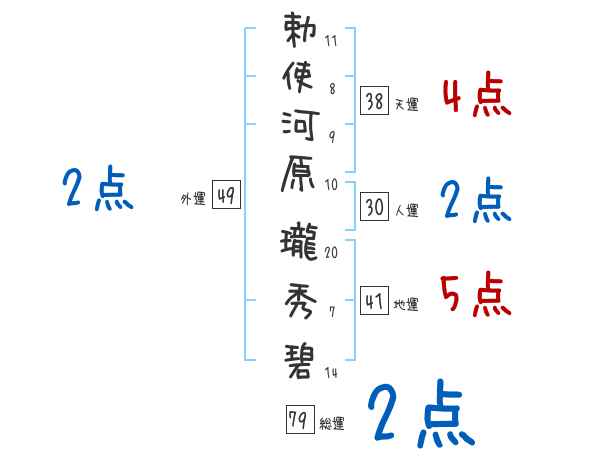 勅使河原瓏秀碧さんの外運は49画の2つ星