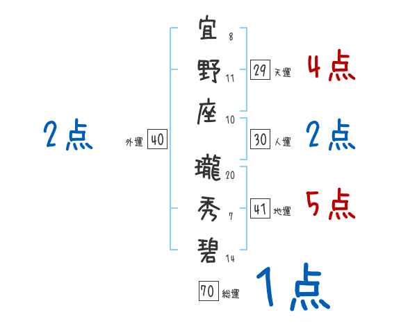 宜野座瓏秀碧さんの画数の鑑定結果
