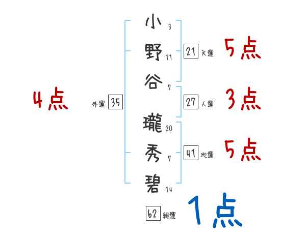 小野谷瓏秀碧さんの画数の鑑定結果