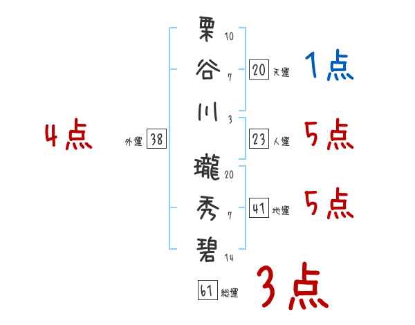 栗谷川瓏秀碧さんの画数の鑑定結果