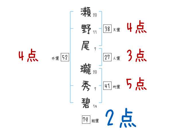 瀬野尾瓏秀碧さんの外運は52画の4つ星
