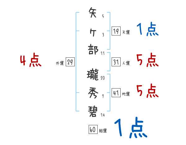 矢ヶ部瓏秀碧さんの画数の鑑定結果