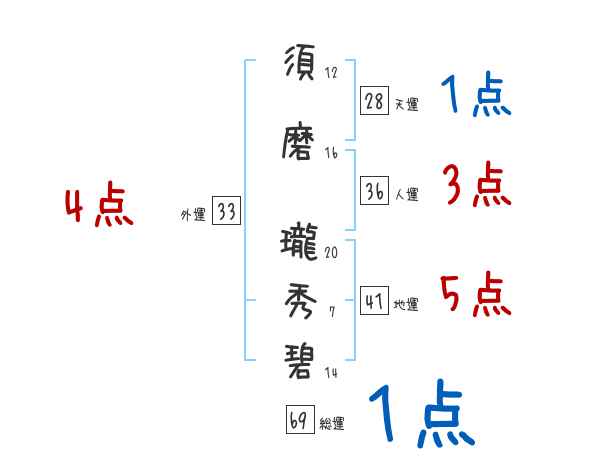 須磨瓏秀碧さんの画数の鑑定結果
