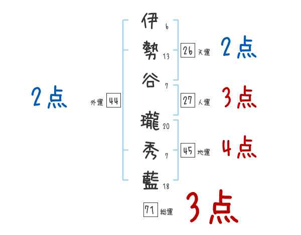 伊勢谷瓏秀藍さんの画数の鑑定結果