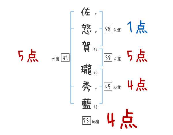 佐怒賀瓏秀藍さんの画数の鑑定結果